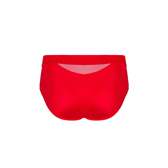 Calzoncillo tipo brief en rojo intenso con detalle de encaje — atrevimiento masculino sin complejos.
