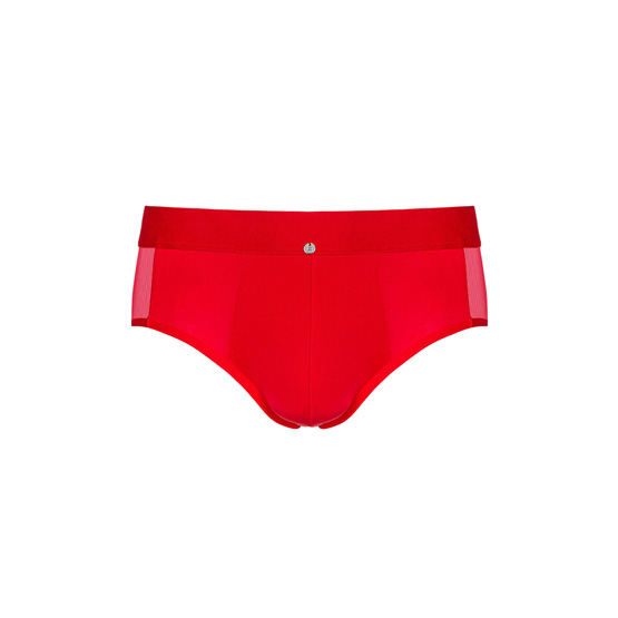 El diseño tipo brief (calzoncillo clásico con tiro bajo) en color rojo vibrante hace una declaración de intenciones desde el primer vistazo. El detalle de encaje y la banda en la cintura con el logo de Obsessive añaden ese punto de cuidado estético que diferencia una prenda de lencería de la ropa interior convencional.