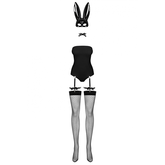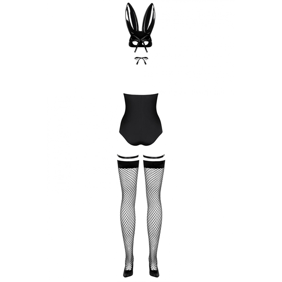 Con su body negro ajustado que abraza tus curvas, su máscara con orejas coquetas y su gargantilla juguetona, este set es un auténtico imán de miradas.