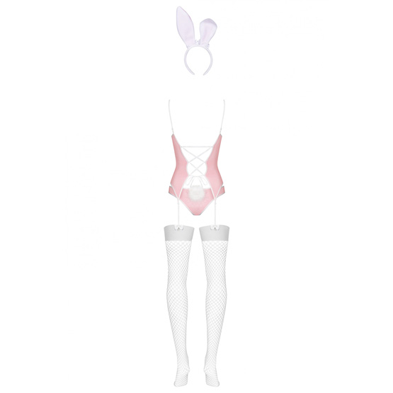- Set completo: incluye top con ligas, braguita con una adorable cola de conejito, medias súper sexys y unas irresistibles orejitas para completar el personaje.