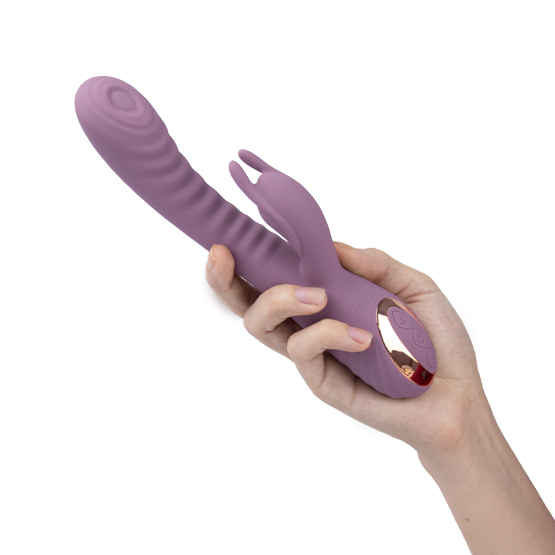 3. Inserta el eje curvo para que estimule el punto G y acomoda el brazo externo sobre el clítoris.