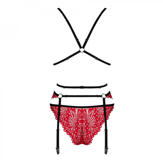 ¡Redescubre el poder del rojo con este conjunto extremadamente caliente! Envuelve tu cuerpo en la delicadeza de sus encajes y deja que las tentadoras correas enfaticen tus curvas.