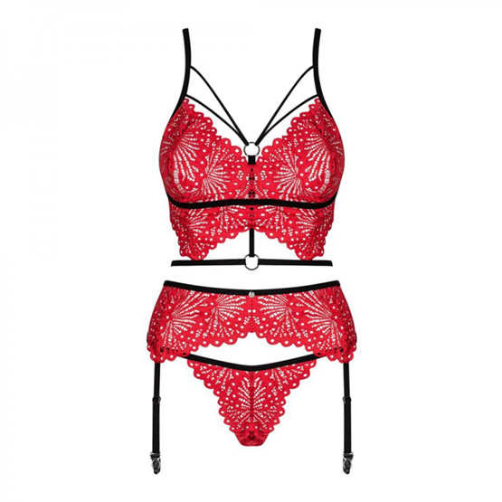 Elegante y sensual set 3 piezas en color rojo.