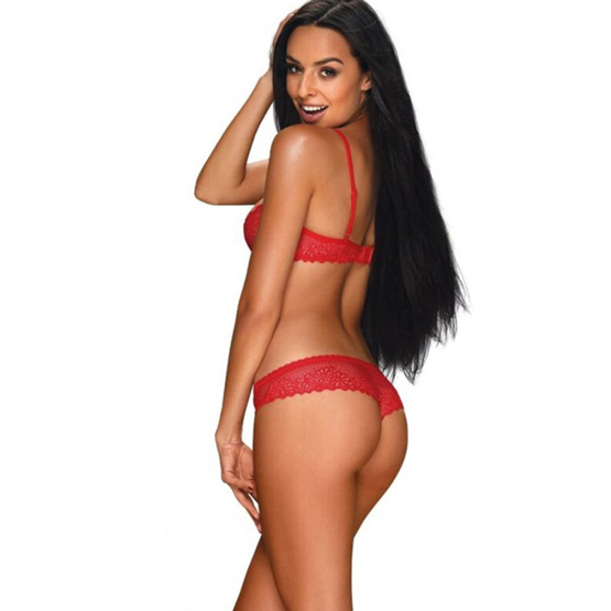 Si estás buscando un conjunto sensual del color de la pasión, este set dos piezas de encaje te hará sentir como un diosa en tus momentos más íntimos.