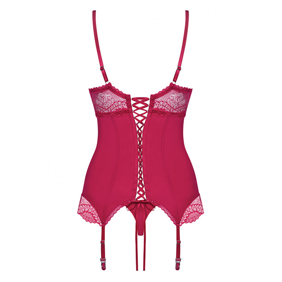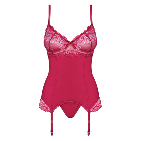 Una mezcla explosiva de color intenso y encaje maravilloso: el corset Rosalyne con tanga de Obsessive. ¿Estás lista para verte en el espejo con él puesto? Por supuesto que sí. Te sentirás tan tentadora y femenina que tu pareja lo notará desde el otro lado de la habitación.