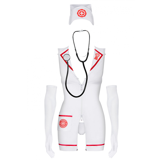 - Set completo: incluye vestido ajustado, tanga sexy, gorro, guantes y hasta un estetoscopio real para que no falte ningún detalle.