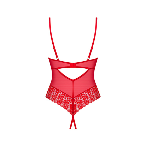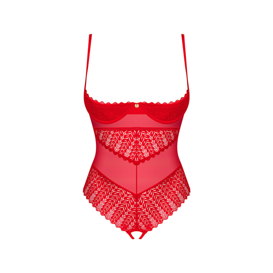 Teddy rojo de encaje con entrepierna abierta y copas recortadas.
