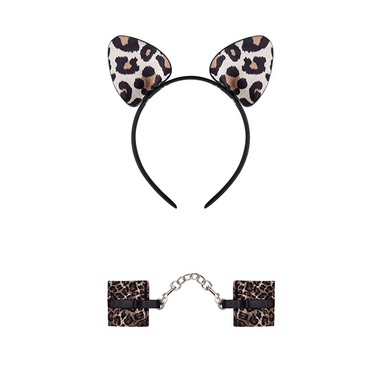 ¿Lista para convertirte en la depredadora más sexy de la noche? El set Tigerlla de Obsessive combina unas orejas de gato con estampado leopardo y unas esposas a juego para que puedas jugar con total confianza y un estilo irresistible.
