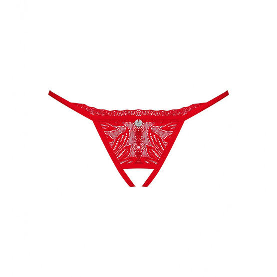 Tanga con diseño abierto en la entrepierna, confeccionado en encaje elástico, pensado para realzar la figura con estilo y seducción. Ideal para noches especiales o sorprender en pareja.